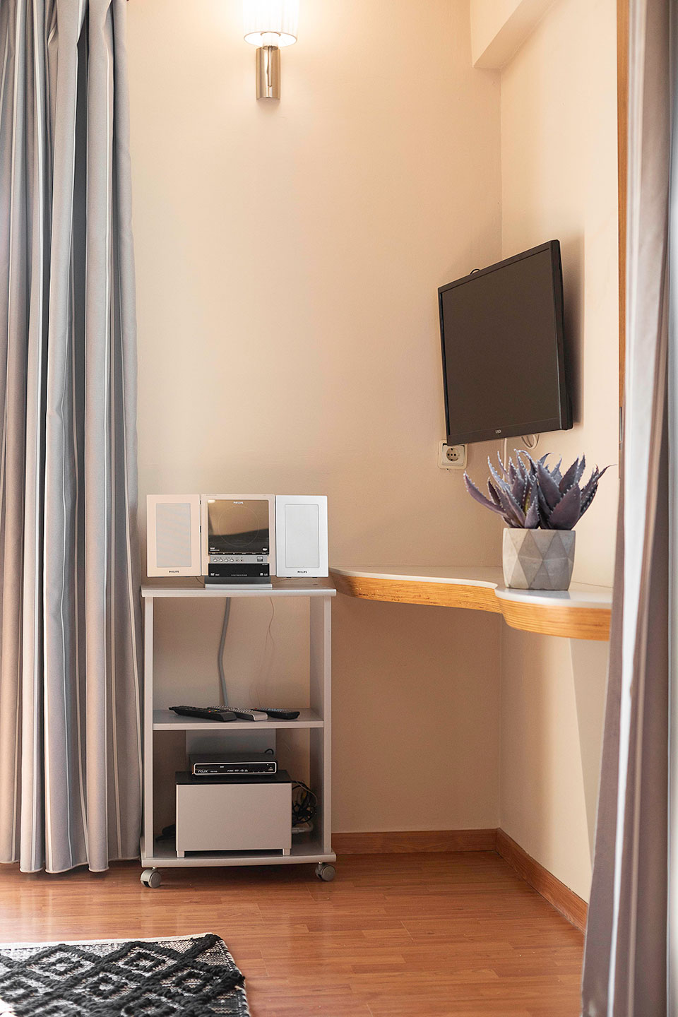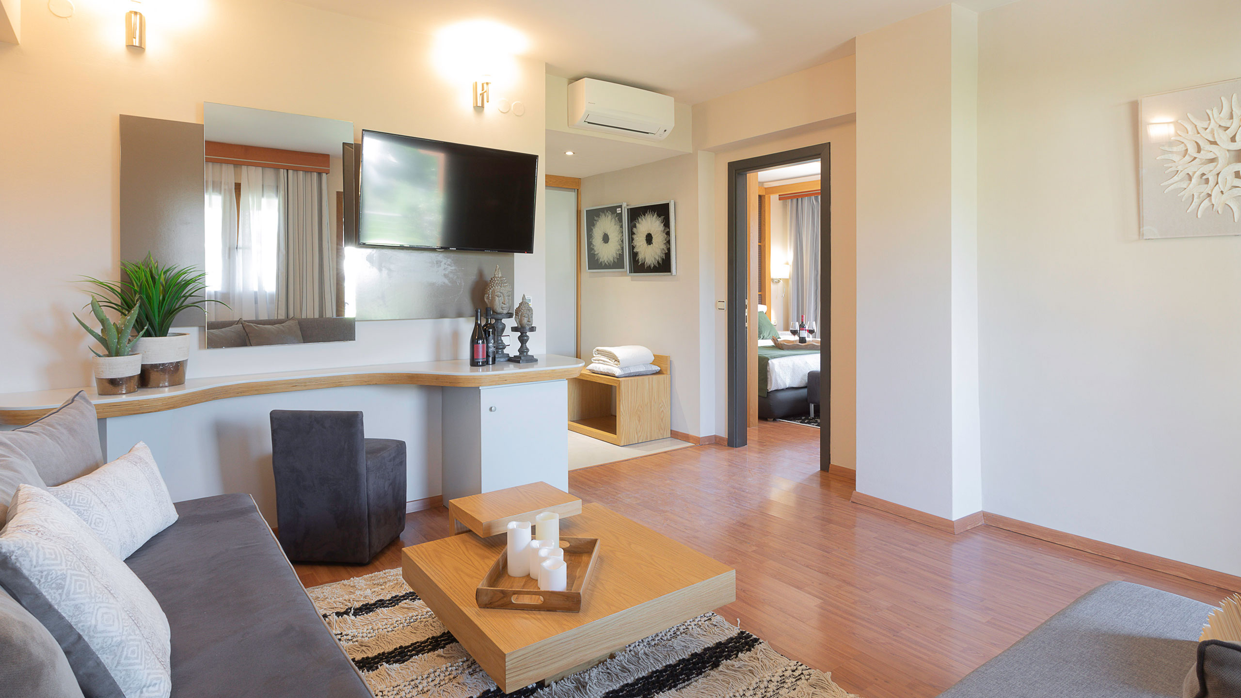 Απολαύστε μια ευρύχωρη σουίτα με άνετο κρεβάτι, καθιστικό για χαλάρωση και δύο ιδιωτικά μπαλκόνια με γαλήνια θέα στην πισίνα. Σχεδιασμένη για άνεση και λειτουργικότητα, προσφέρει έναν φιλόξενο χώρο για χαλάρωση, κοινωνικές στιγμές και απόλυτη απόλαυση της διαμονής σας.