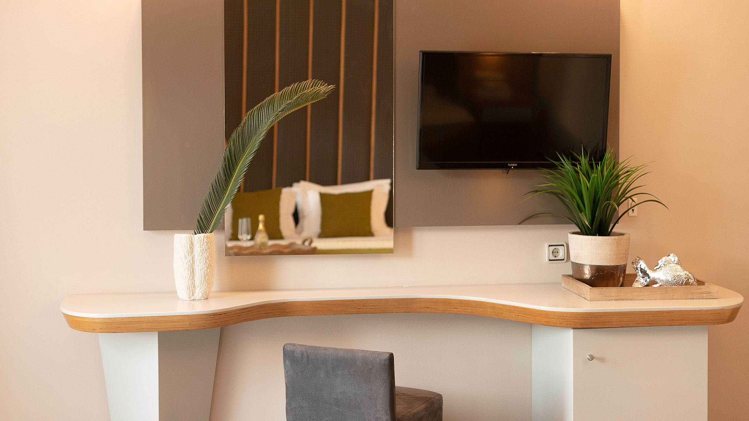 Χαλαρώστε σε μια ευρύχωρη σουίτα με το χαρακτηριστικό στρογγυλό κρεβάτι που προσφέρει μια σύγχρονη αίσθηση. Με απαλή φωτισμό, μοντέρνες λεπτομέρειες και χαλαρωτική ατμόσφαιρα, αποτελεί το ιδανικό περιβάλλον για να απολαύσετε τη ζωντανή θέα της πόλης και μια αξέχαστη διαμονή.