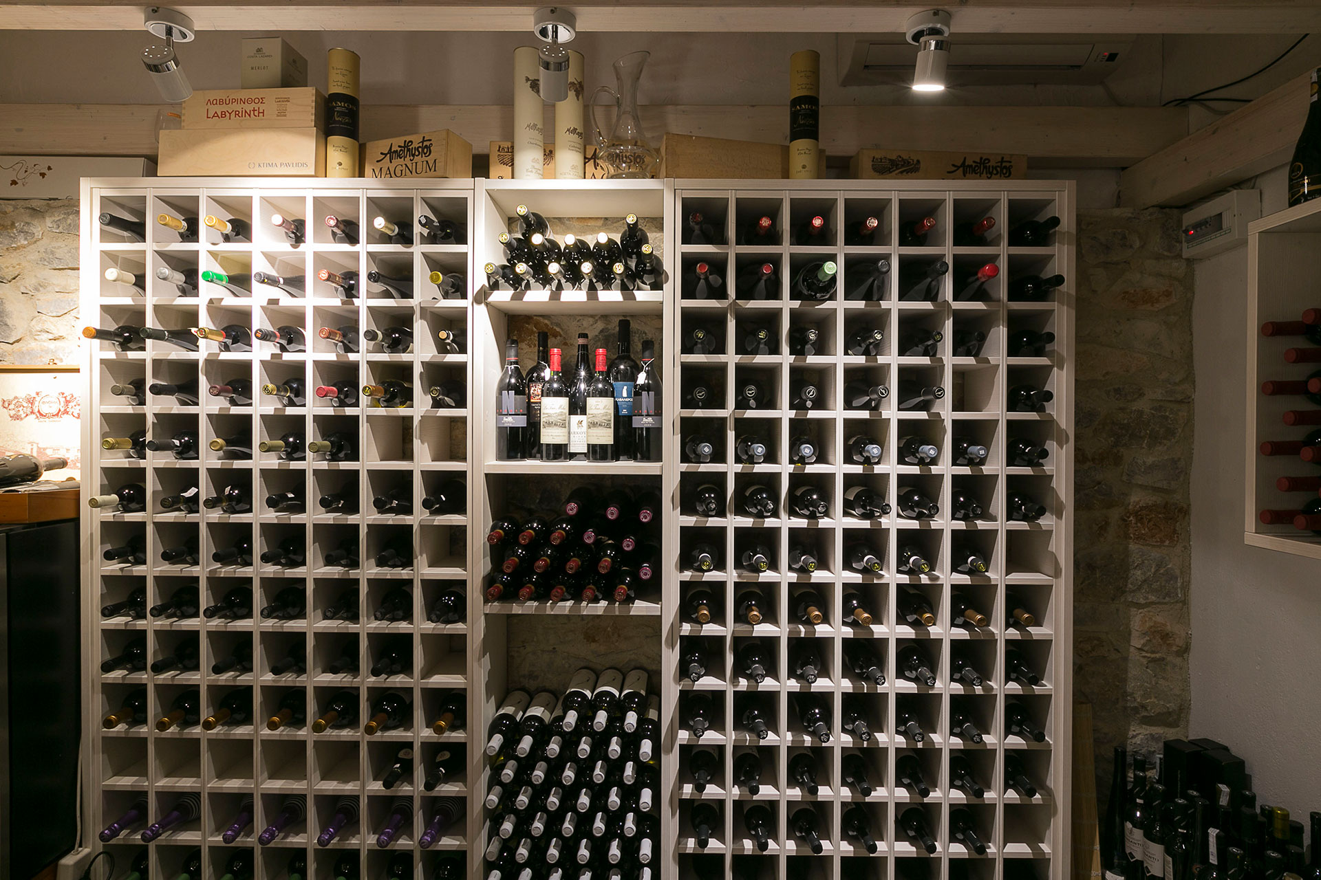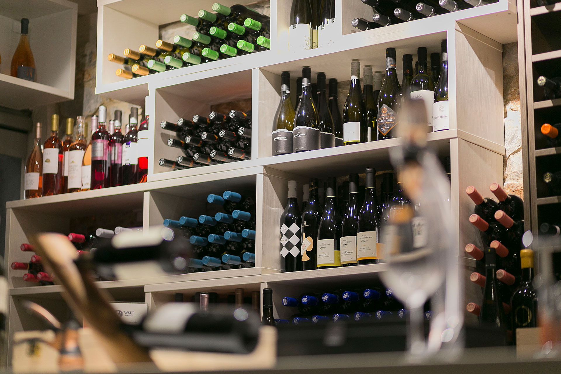 Step inside our wine cellar, a space designed for true wine enthusiasts. Explore hundreds of carefully curated labels from Greece, Italy, France, and celebrated New World regions such as Argentina, South Africa, and New Zealand. From classic international whites like Sauvignon Blanc and Chardonnay to Greek varieties such as Assyrtiko and Malagouzia, and from reds like Merlot and Syrah to Xinomavro and Agiorgitiko, there’s a wine for every palate. Our knowledgeable staff are on hand to recommend the perfect pairing, tailored to the time of day, your meal, and personal taste, ensuring an unforgettable wine experience.
